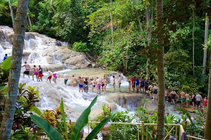 Blue Hole Waterfalls is One of the most picturesque and off the beaten path attractions on the island. Here you get a chance to feel like a kid again enjoying Tarzan rope swings from cascades, plunging into mineral spring fed pools. You also get to enjoy cliff jumping or diving, all with the assistance of young energetic fun life guards; making the adventure even more fun and safe. Dunn's River Falls is one of Jamaica's most famous natural attractions, located near Ocho Rios. This magnificent waterfall cascades about 180 feet down smooth limestone rocks, creating natural terraced steps and pools perfect for climbing and relaxing.